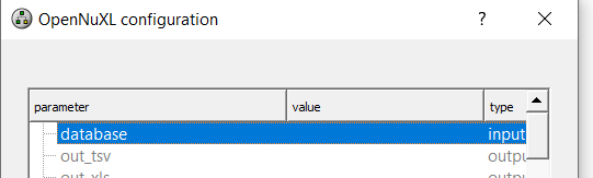 As an alternative to loading database files via an <Input Files> node, you can define the database in the OpenNuXL node by double-clicking the value field of the database parameter and selecting the respective database (Figure Database Configuration).